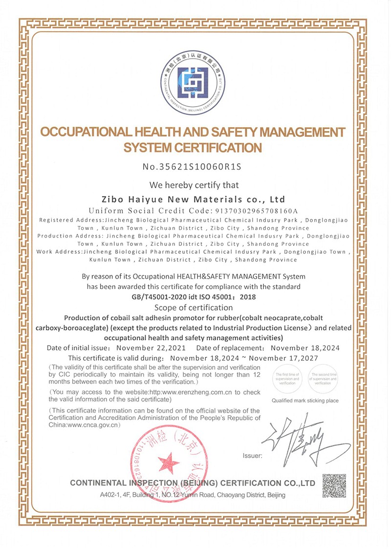 職業(yè)健康安全管理體系認(rèn)證證書-英文